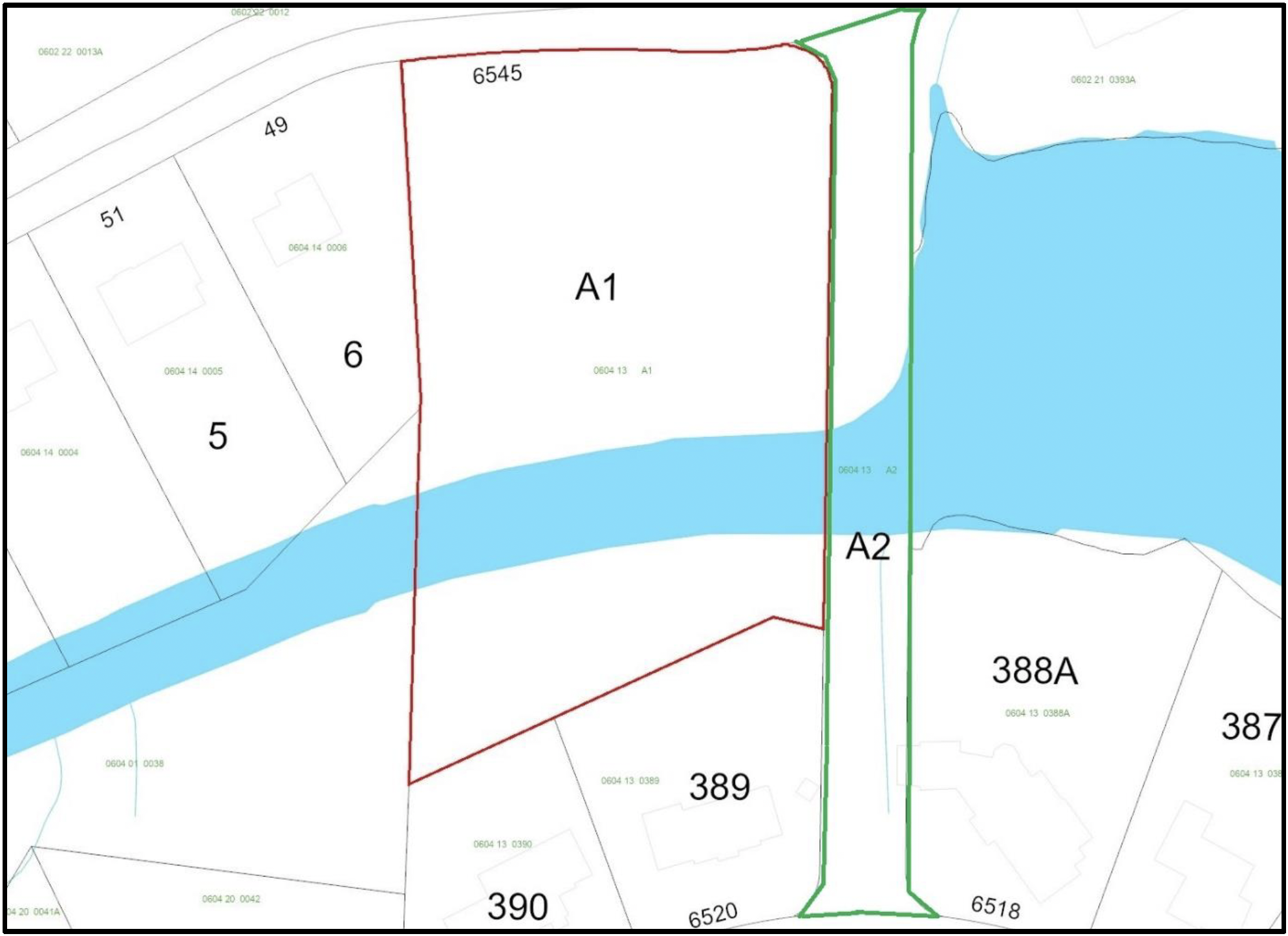 LBWID currently owns Parcel A1 (outlined in red) and LBA owns Parcel A2 (outlined in green).